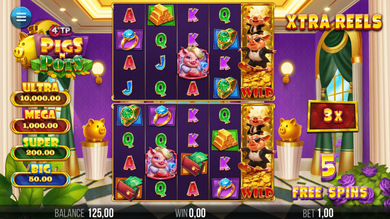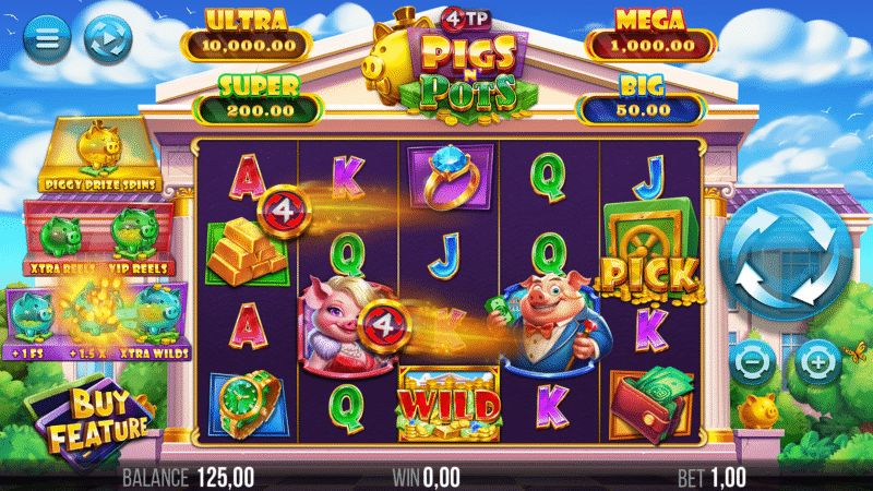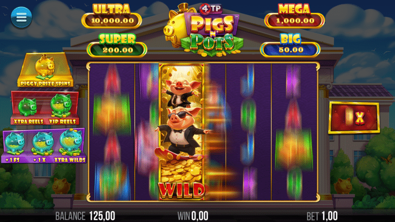 Combo Pots™ lets you build up 6 feature pots to boost your Free Spins! Pots can award additional free spins, boost the Piggy Wild Respins multiplier, or add more Piggy Wild stacks to the reels. The higher pots can trigger VIP Reels to remove low symbols from the reels, Xtra Reels to play on 2 sets of reels at the same time, or Piggy Prize Spins for increased chances of winning the Piggy Prize Bonus!